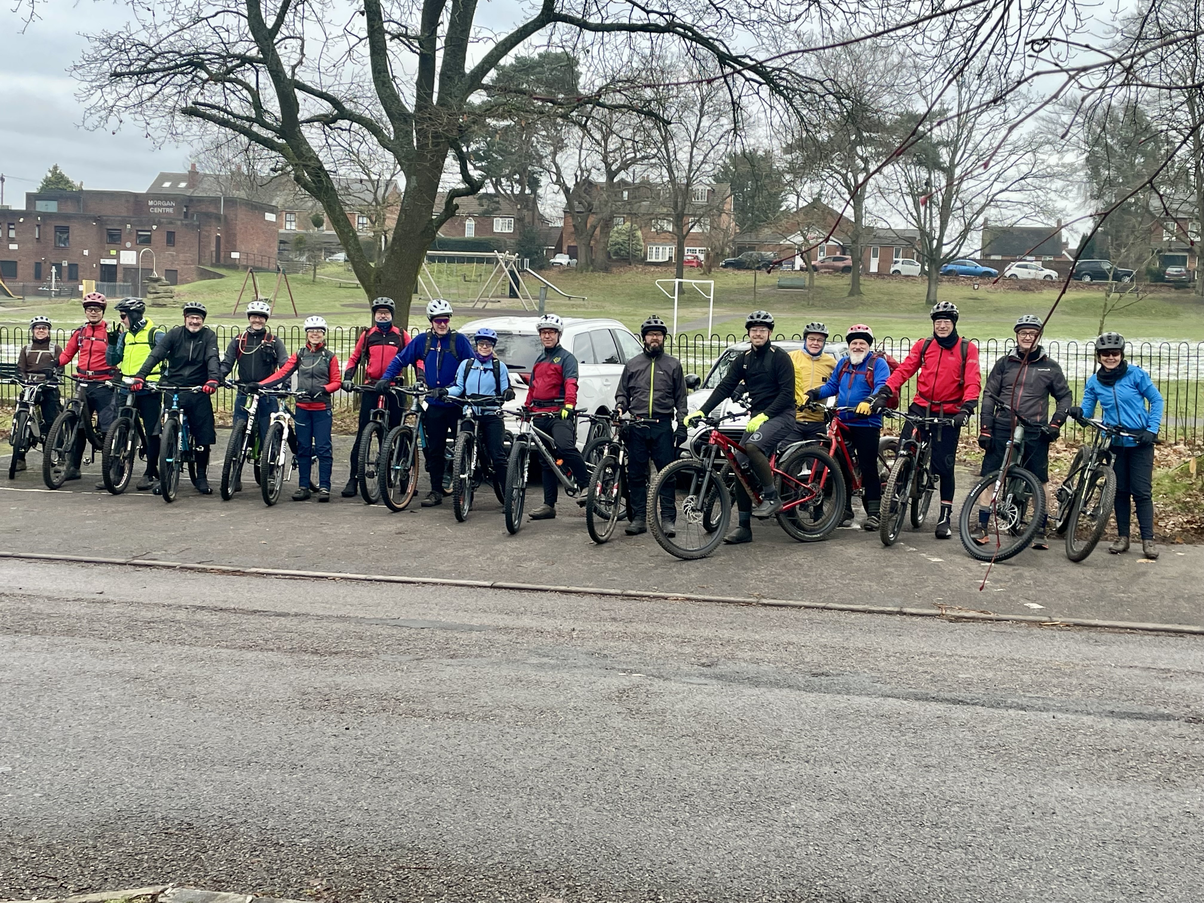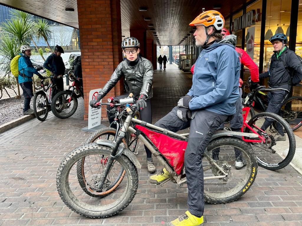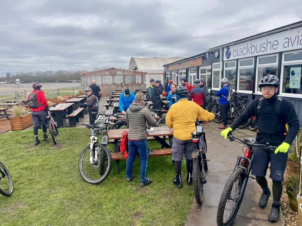Nice gathering of the BOB family today on the winter Open Ride. We split into two groups of 10, and not only made it to the cafe together this time, we bumped into each other twice in the woods. Frozen puddles, good laughs & coffee, what’s not to like?
