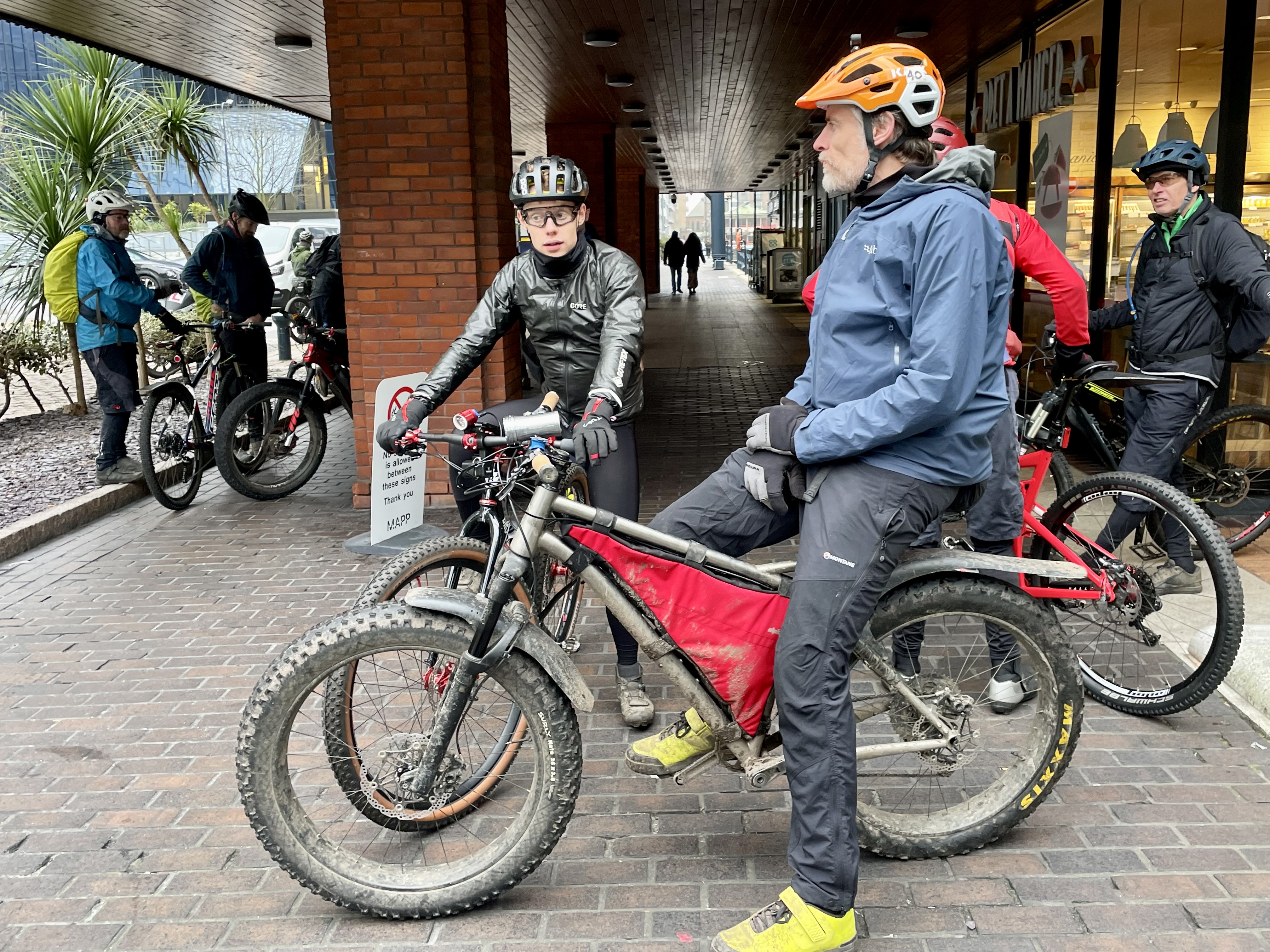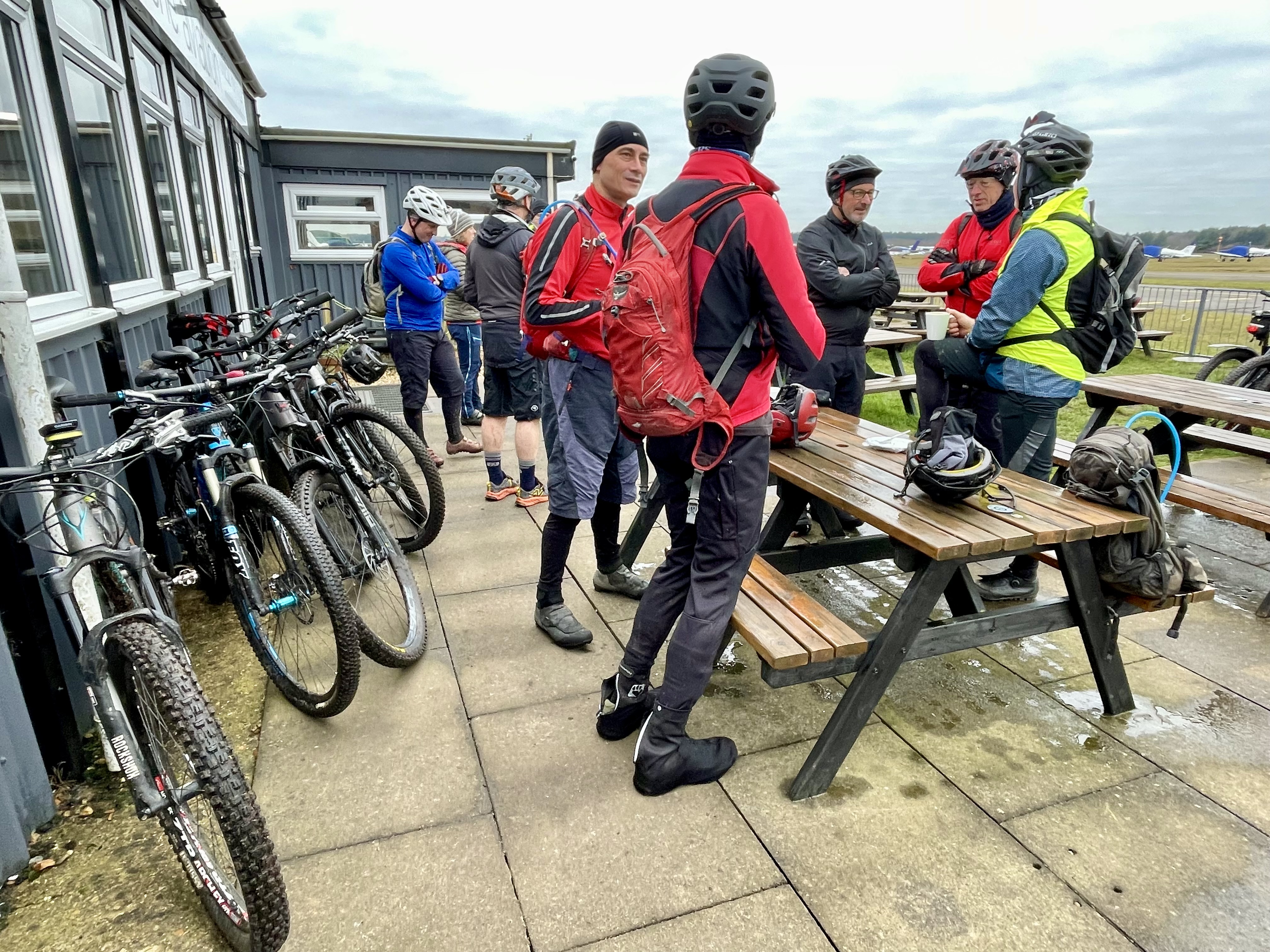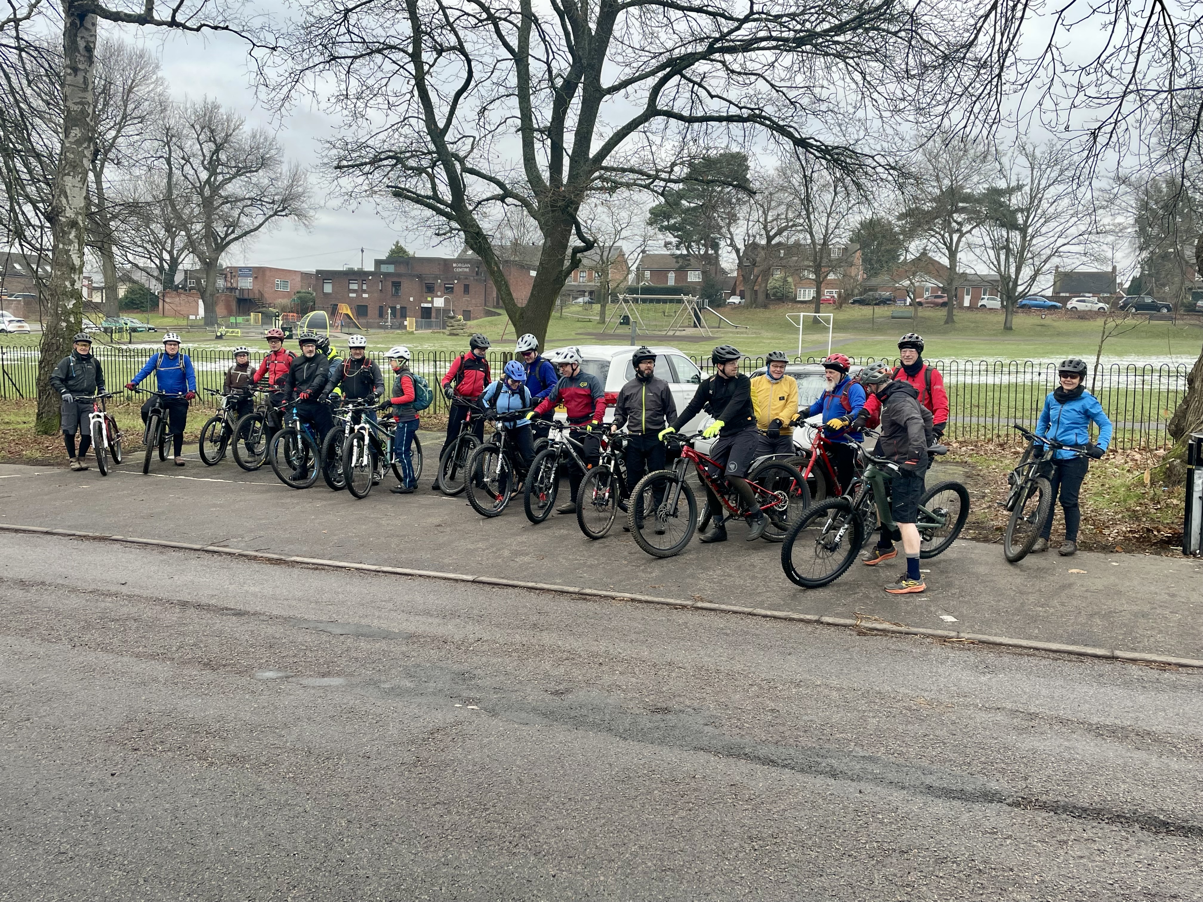 Nice gathering of the BOB family today on the winter Open Ride. We split into two groups of 10, and not only made it to the cafe together this time, we bumped into each other twice in the woods. Frozen puddles, good laughs & coffee, what’s not to like?